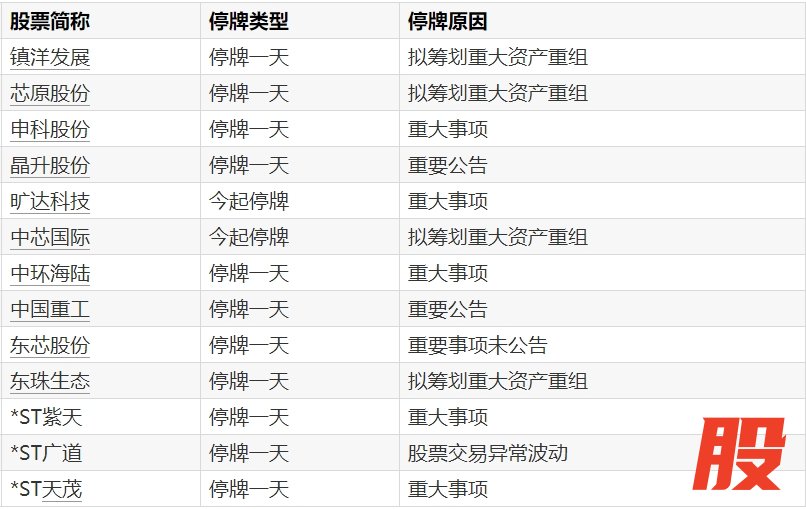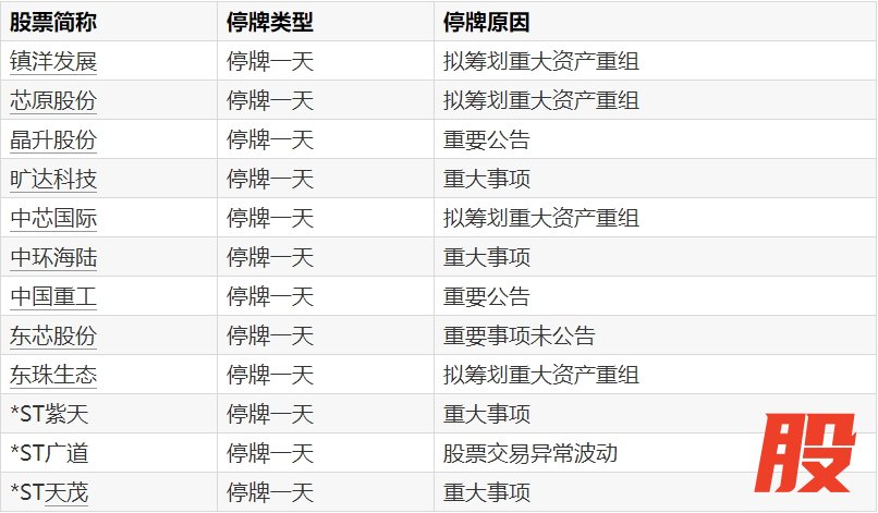 A股停牌提示:13股今日停牌A股停牌提示:13股今日停牌
